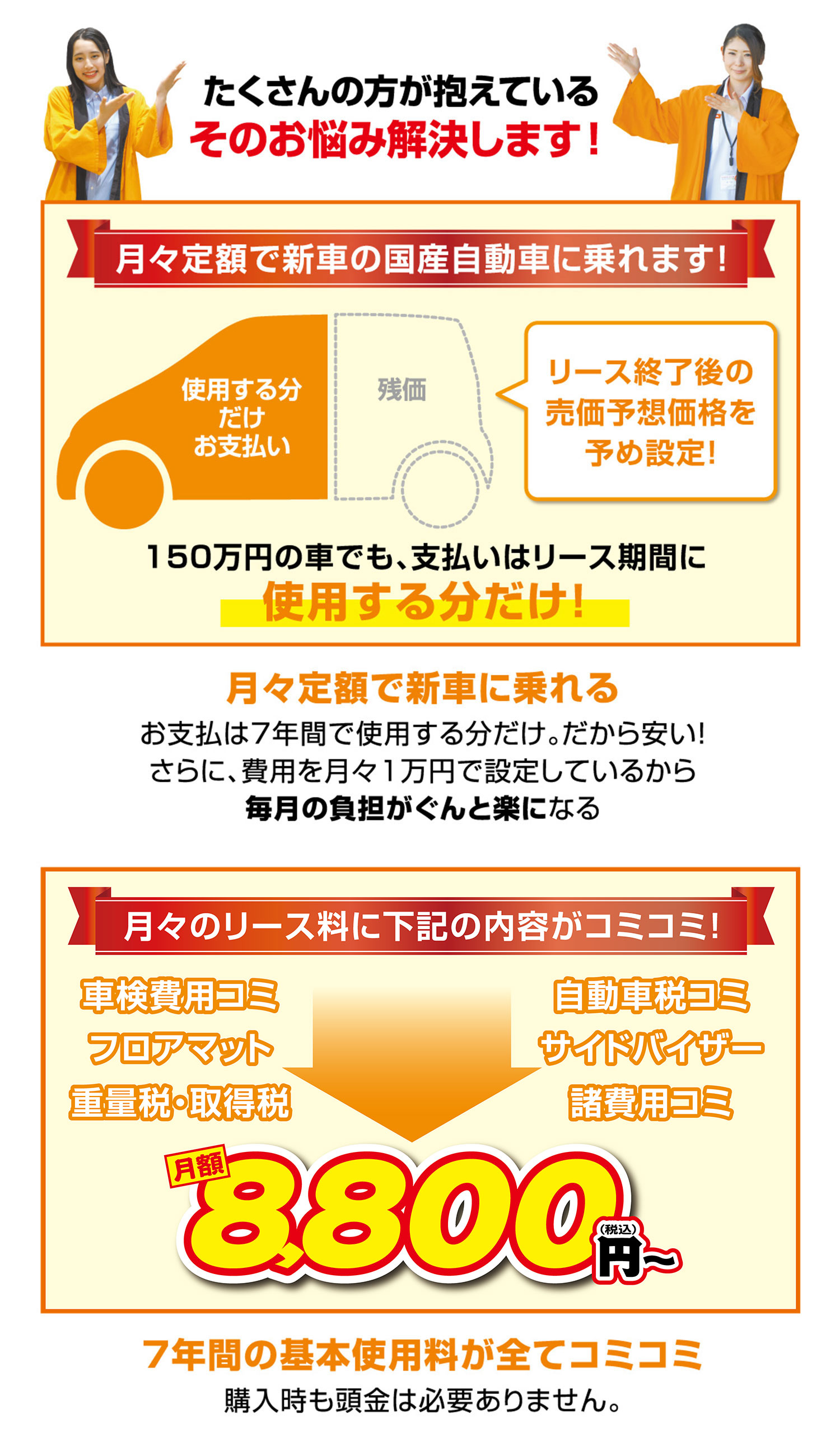 リースなら現金0円!車検・税金心配無用!日本全国で大人気!詳細はこちら